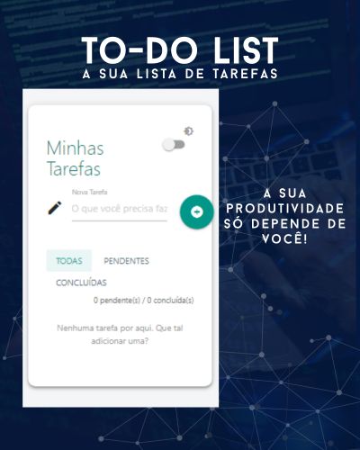 “Um aplicativo de lista de tarefas (<b>To-Do List</b>) simples, moderno e elegante. Crie, gerencie e salve suas tarefas diretamente no navegador. Com um design limpo, filtros e modo escuro, organizar seu dia a dia nunca foi tão fácil.”